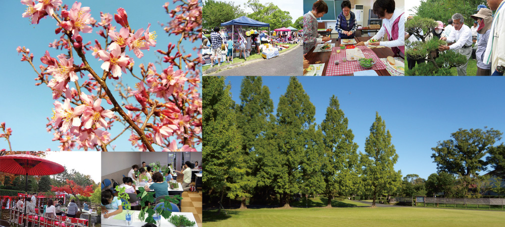 新緑5月のグリーンフェスティバルや秋の音楽会といったイベントや、ヨガ、アロマ、クラフト、こけ玉づくりなどのワークショップも随時開催しています。